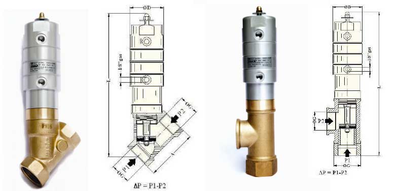 Клапан пневматический угловой (Y -образный)1/2" -2 " бронза